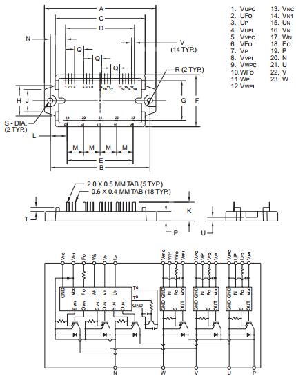 PM15CSJ060 features: (1)complete output power circuit; (2)gate drive circuit; (3)protection logic.